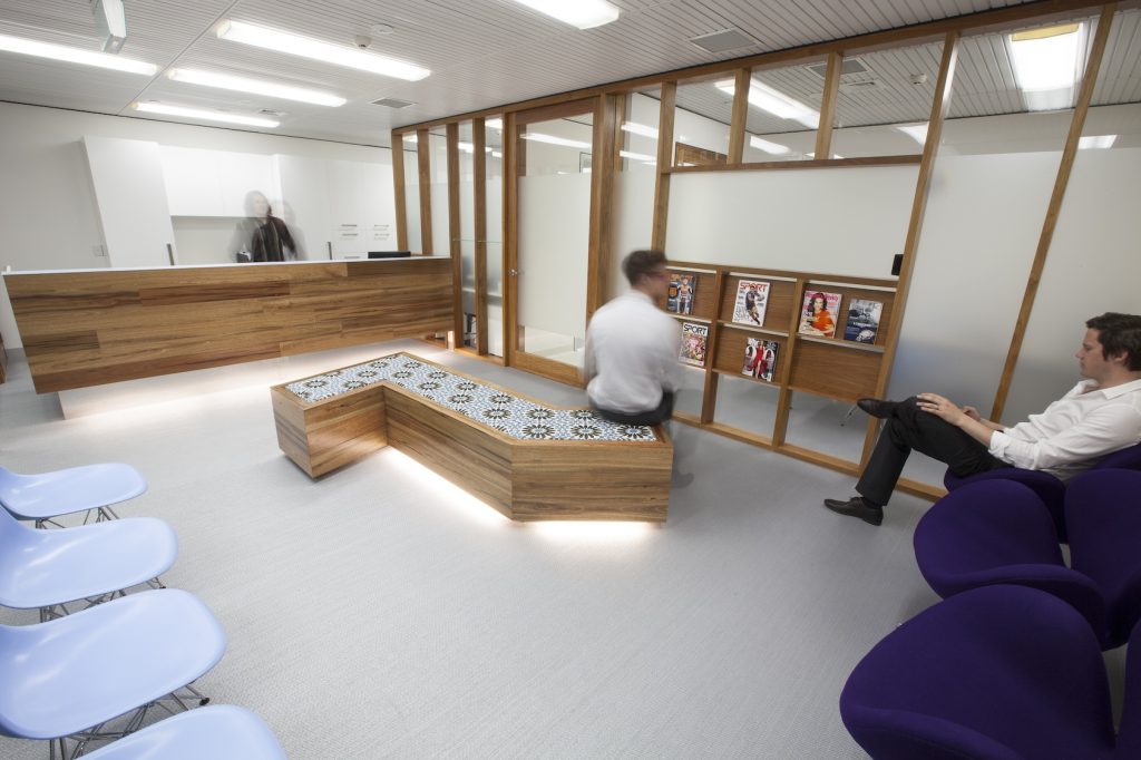 Tenancy demolition and new fit-out including: reception and waiting, kitchen and staff room, 4 person office, board room, 4 x surgery, sterilisation and lab room.
